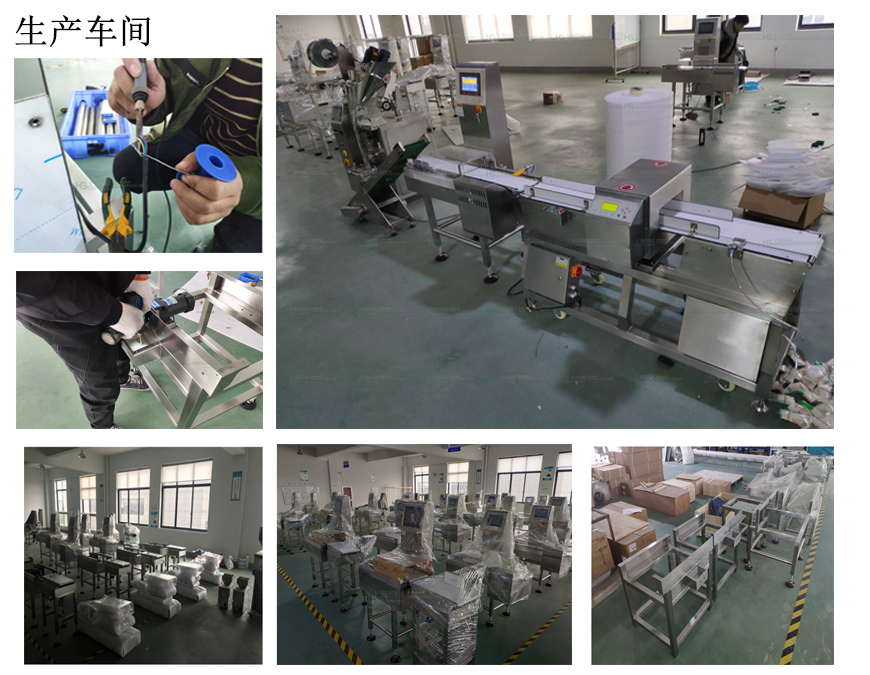 食品在线重量检重秤,大量程动态分选秤,分选秤采用连续动态自动称重方式检测物品重量,配以自动剔除机构,从而实现在流水线上的高速、高精度的重量检测及分选